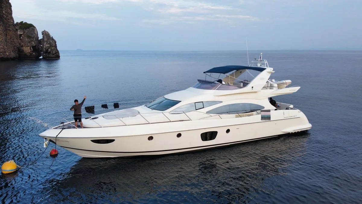 The superbly maintained Azimut 68 Evolution motor yacht is one of the stars of the Phuket yacht rental market: with its elegant Italian lines and well thought-out design all round, it is the perfect cocktail of comfort, performance and style.