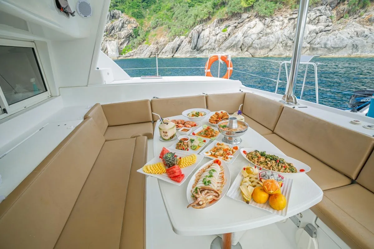 This Sailing Catamaran for Charter in Phuket is perfect for trips to Khai Islands, Koh Mai Thon/Maiton (Honeymoon Island), Coral Island / Banana Beach (Koh Hey), Koh Racha Yai (Koh Raya Yai), !