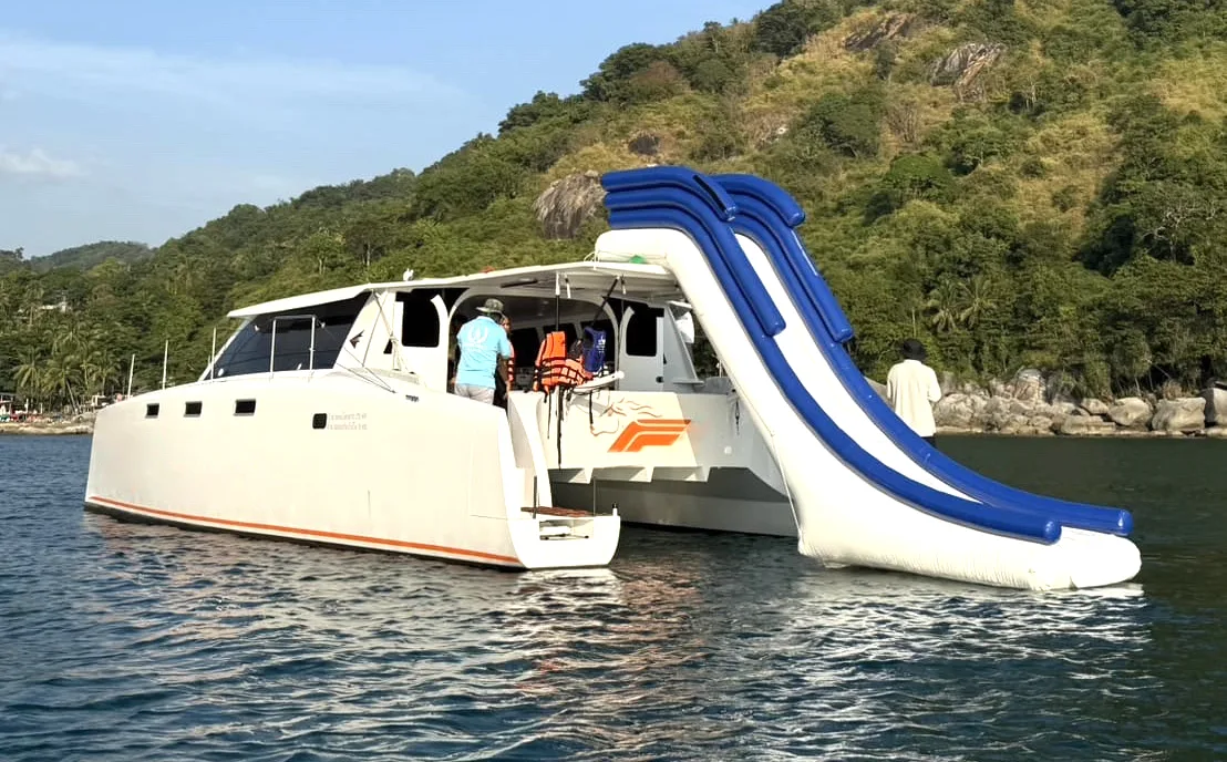 This Power Catamaran for Charter in Phuket is perfect for trips to Coral Island / Banana Beach (Koh Hey), Khai Islands, Koh Mai Thon/Maiton (Honeymoon Island), Koh Racha Yai (Koh Raya Yai), Phang Nga Bay (Khao Phing Kan), Koh Hong (Phang Nga Bay), Phi Phi Islands, Phi Phi Don Island, Phi Phi Leh, !