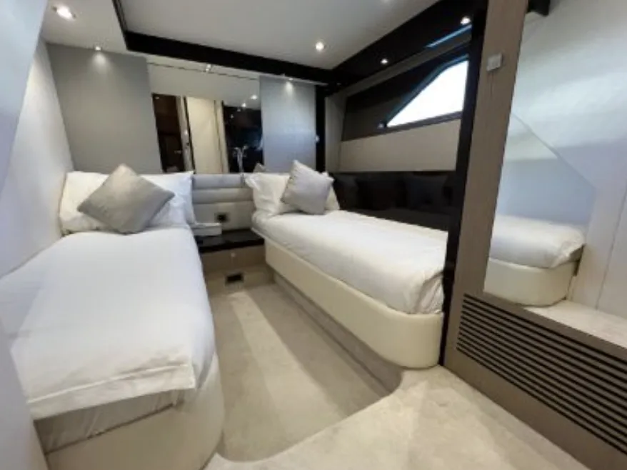 Furnished with 3 capacious cabins, it is ideal for multi-day cruises with up to 6 guests or 25 day-guests. The airy flybridge is just the highlight of the enjoyment that the yacht promises in every respect.