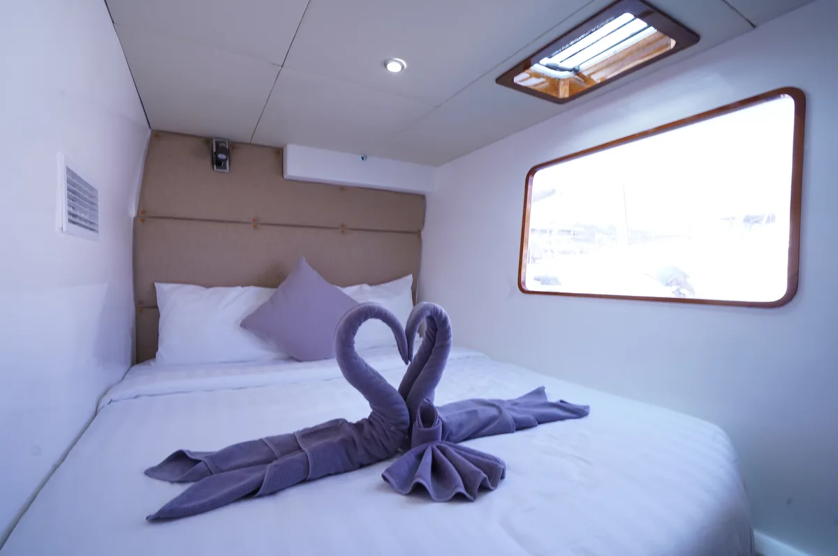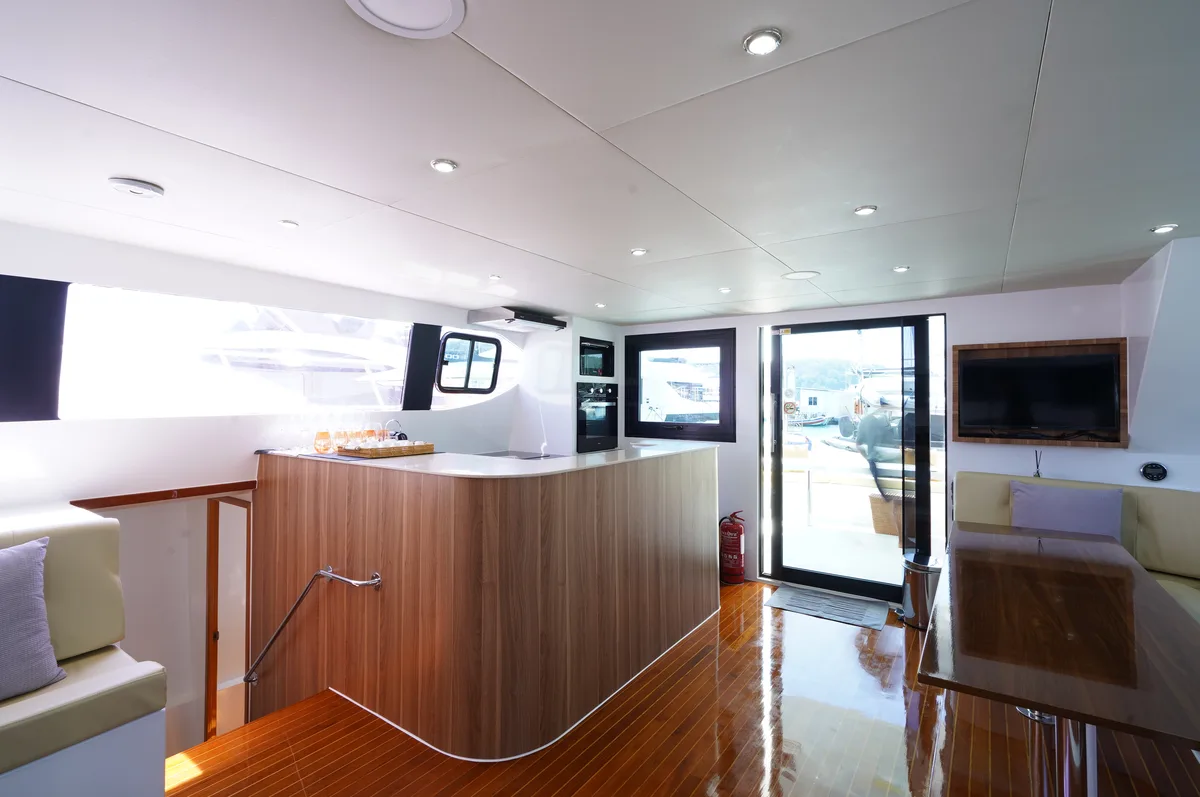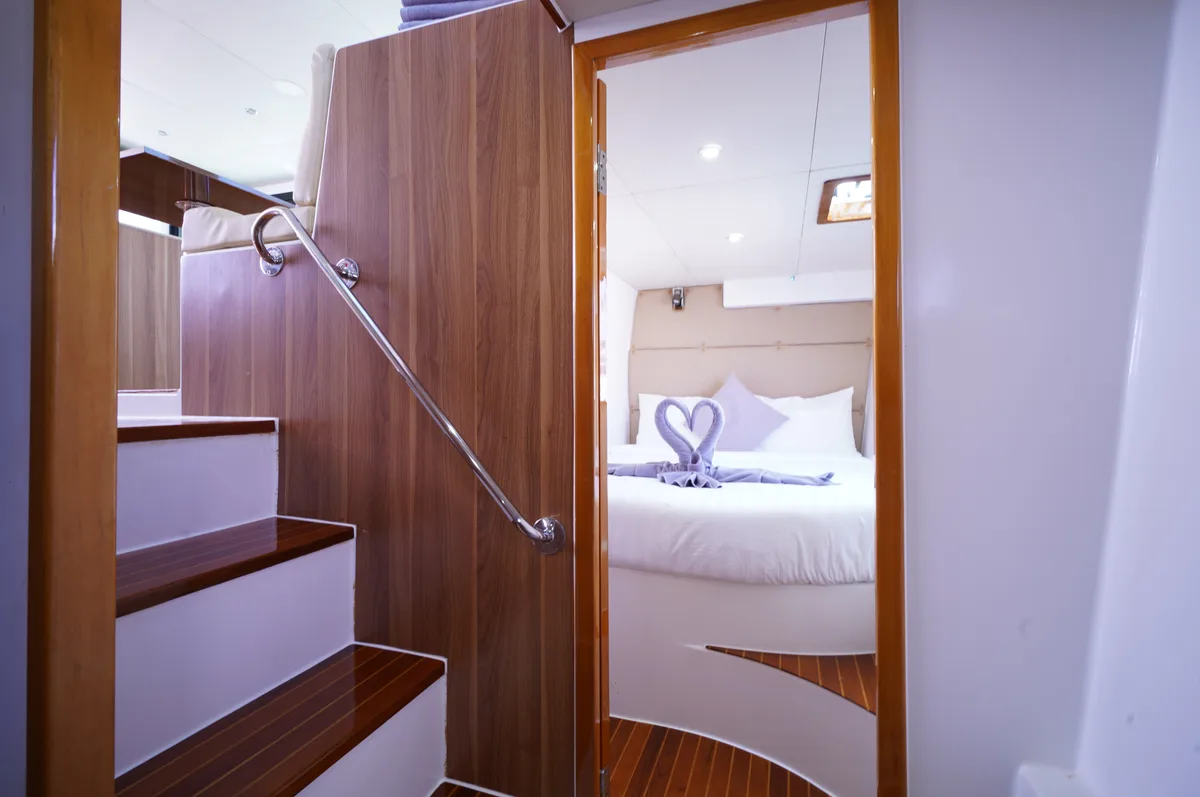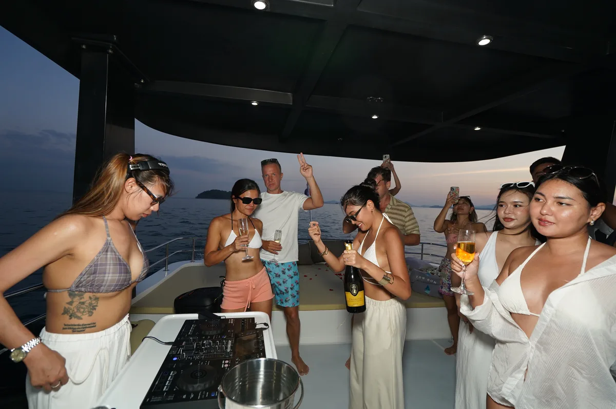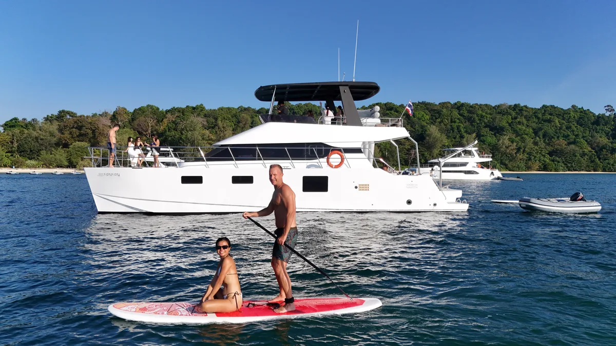 Experience our pristine 52' power catamaran for charter in Phuket – still brand-new after 5 years. Perfect for groups up to 40 guests, ideal for weddings, parties, and corporate events. Features spacious flybridge, air-conditioned saloon, 3 cabins, waterslide, paddleboards, and snorkeling gear. Explore Phang Nga Bay's limestone cliffs, Koh Yao Yai's beaches, or Koh Hong Krabi's crystal waters.