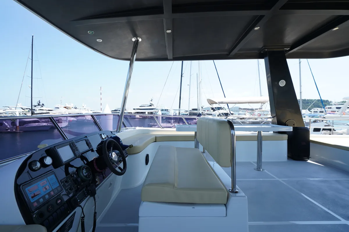 The Custom Build 52ft belongs to the 'Collection of the Best' of all Power Catamarans to charter in Phuket.