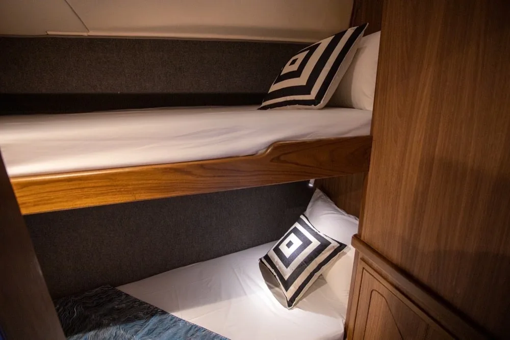 • 6 berths in 1 double, 2 single Cabins for overnight charters
