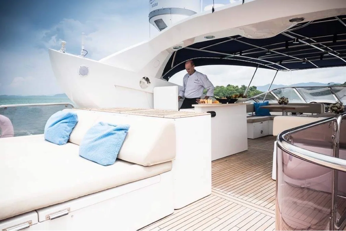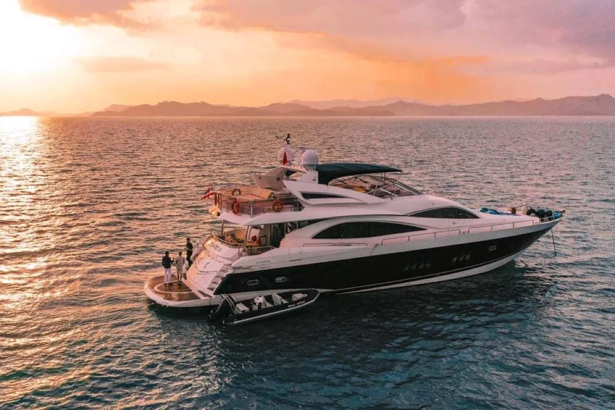 The Sunseeker 90ft belongs to the 'Collection of the Best' of all Superyachts to charter in Phuket.
