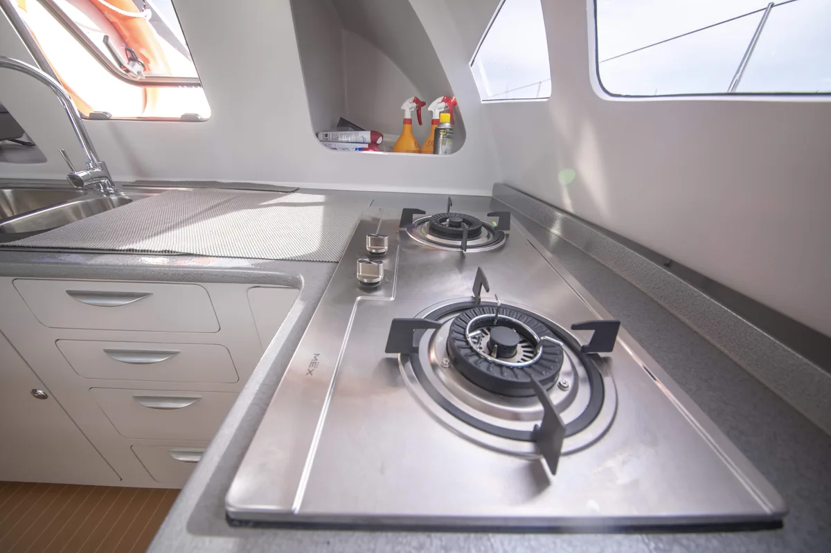 The spacious flybridge and modern living spaces offer a relaxing experience. It also comes with all amenities for your comfort, from high speed wifi to various water sports such as kayak, windsurf, paddle board and more...to have fun along your journey.