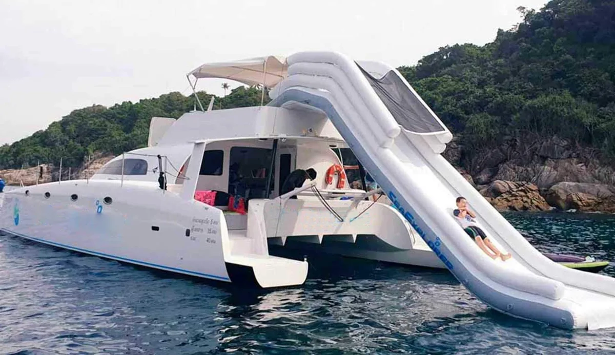 This Power Catamaran for Charter in Phuket is perfect for trips to Phang Nga Bay (Khao Phing Kan), Koh Racha Yai (Koh Raya Yai), Phi Phi Islands, Koh Mai Thon/Maiton (Honeymoon Island), Coral Island / Banana Beach (Koh Hey), !
