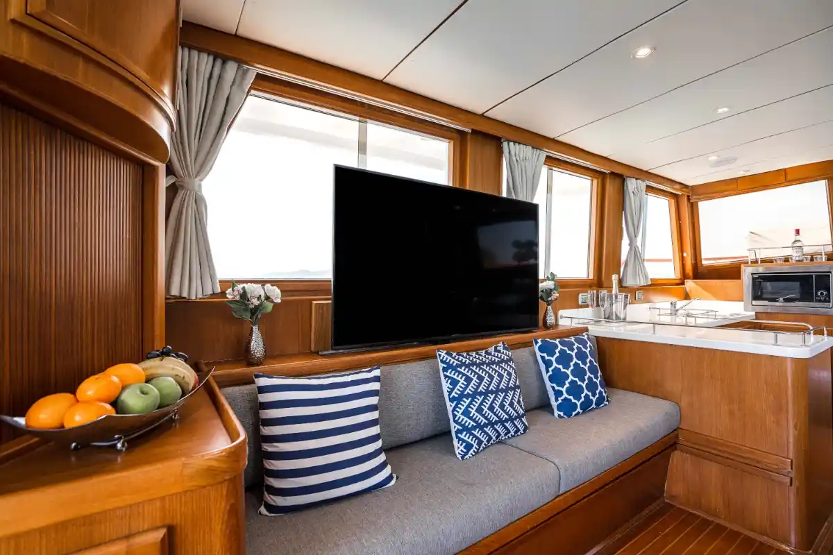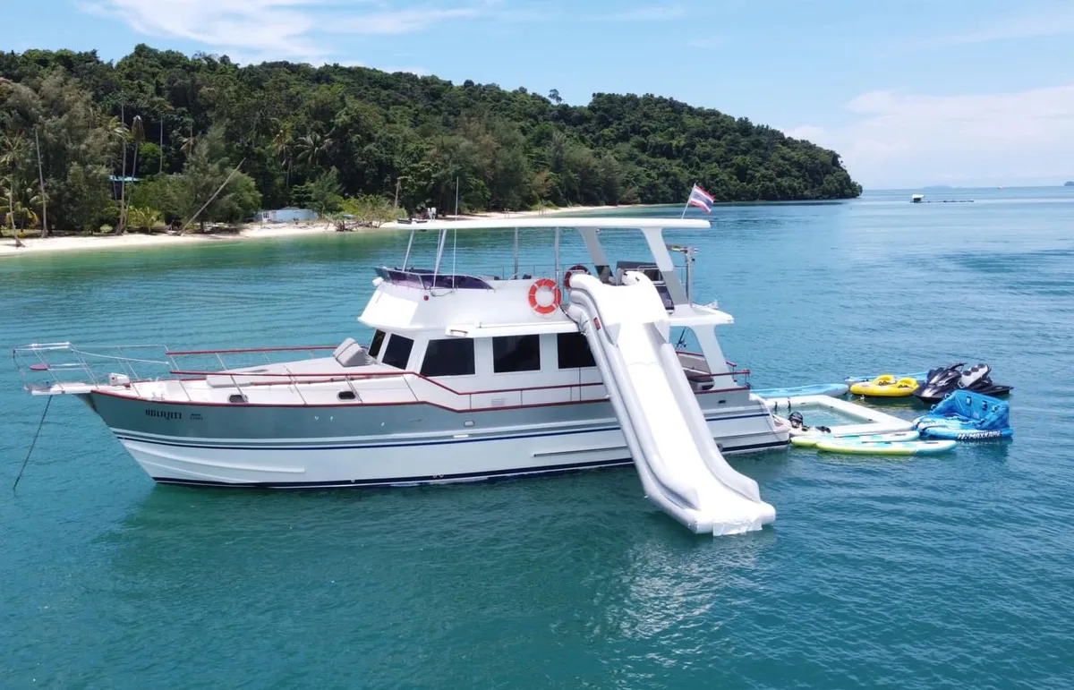 This Motor Yacht for Charter in Phuket is perfect for trips to Koh Hong Island (Krabi), Khai Islands, Koh Mai Thon/Maiton (Honeymoon Island), Phang Nga Bay (Khao Phing Kan), Naka Islands, !