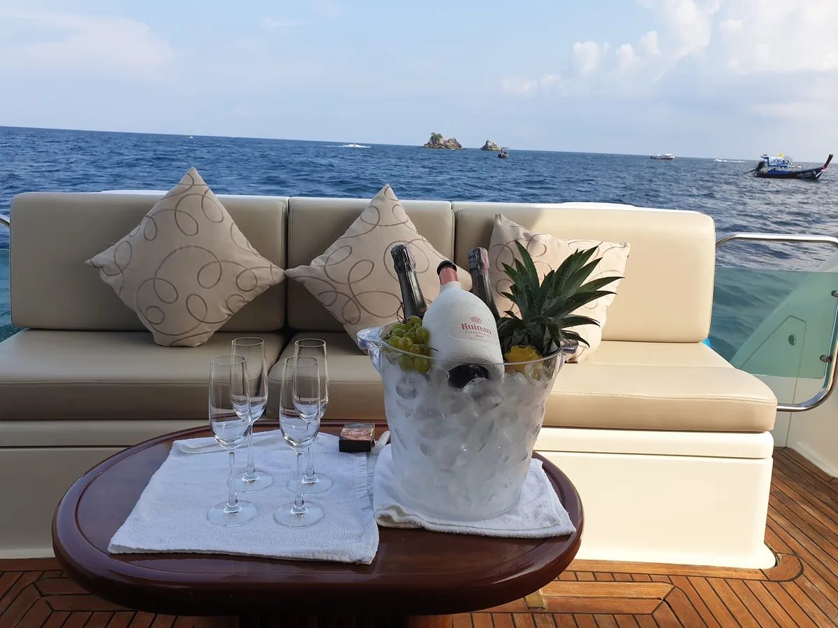 This Motor Yacht for Charter in Phuket is perfect for trips to Phang Nga Bay (Khao Phing Kan), Phi Phi Islands, Khai Islands, Koh Mai Thon/Maiton (Honeymoon Island), Krabi Islands, Koh Racha Yai (Koh Raya Yai), Coral Island / Banana Beach (Koh Hey), !