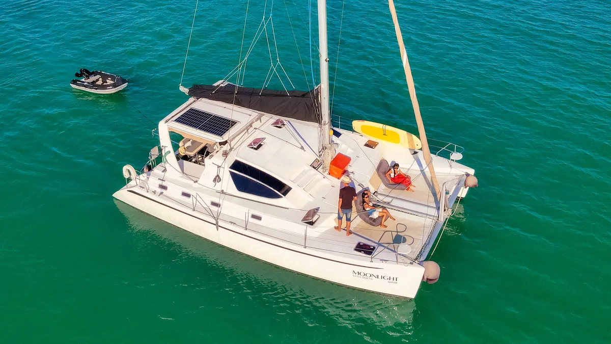 Originally from South African waters, the 38-foot sailing catamaran Moonlight offers surprisingly generous space for her size—and now shines with exclusive brilliance following a comprehensive refit completed in late 2025.