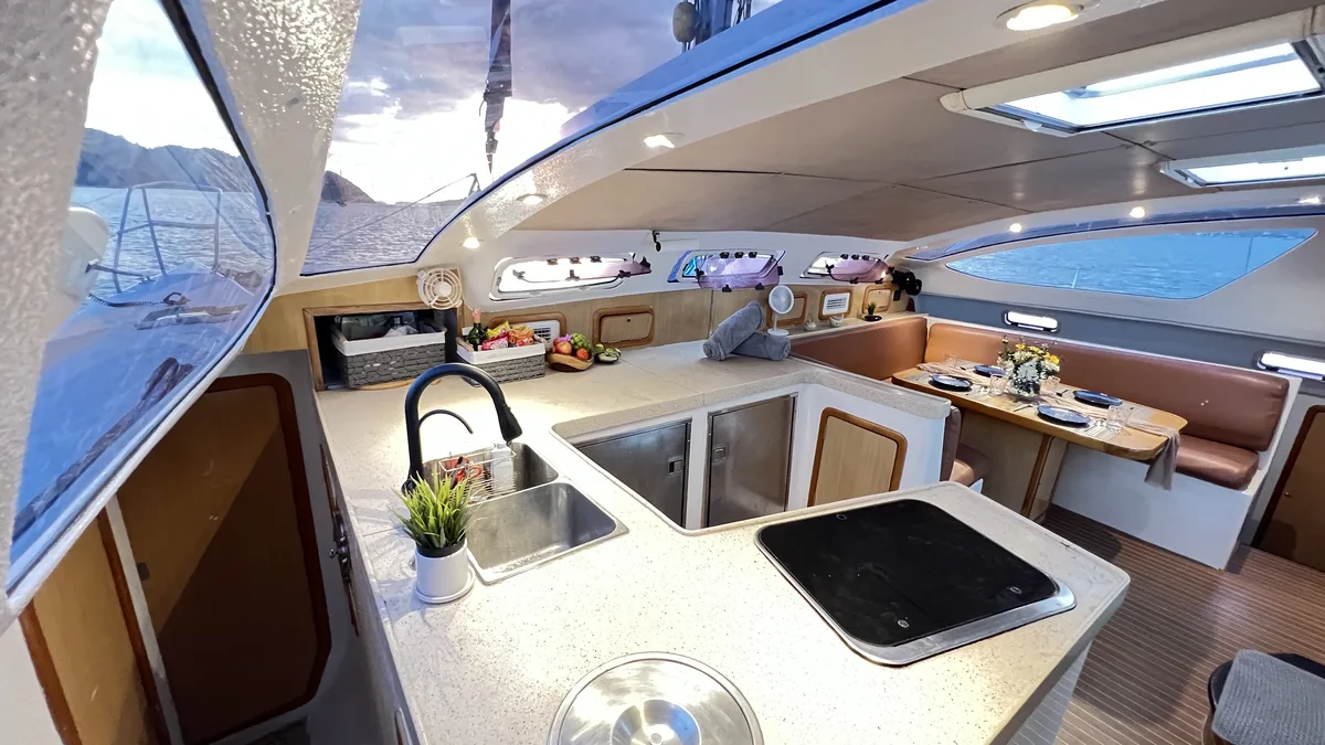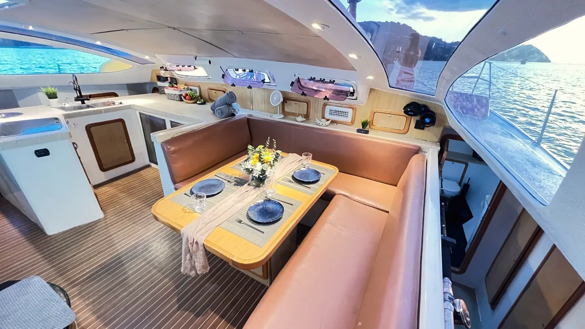 This Sailing Catamaran for Charter in Phuket is perfect for trips to Rang Yai Island (Koh Rang Yai), Phi Phi Islands, Phang Nga Bay (Khao Phing Kan), Koh Hong Island (Krabi), Krabi Islands, Koh Hong (Phang Nga Bay), Khai Islands, Koh Racha Yai (Koh Raya Yai), Mu Ko Lanta Marine Park, Koh Yao Yai & Noi, Koh Rok Islands (Rok Nok & Rok Nai), Koh Mai Thon/Maiton (Honeymoon Island), Coral Island / Banana Beach (Koh Hey), !