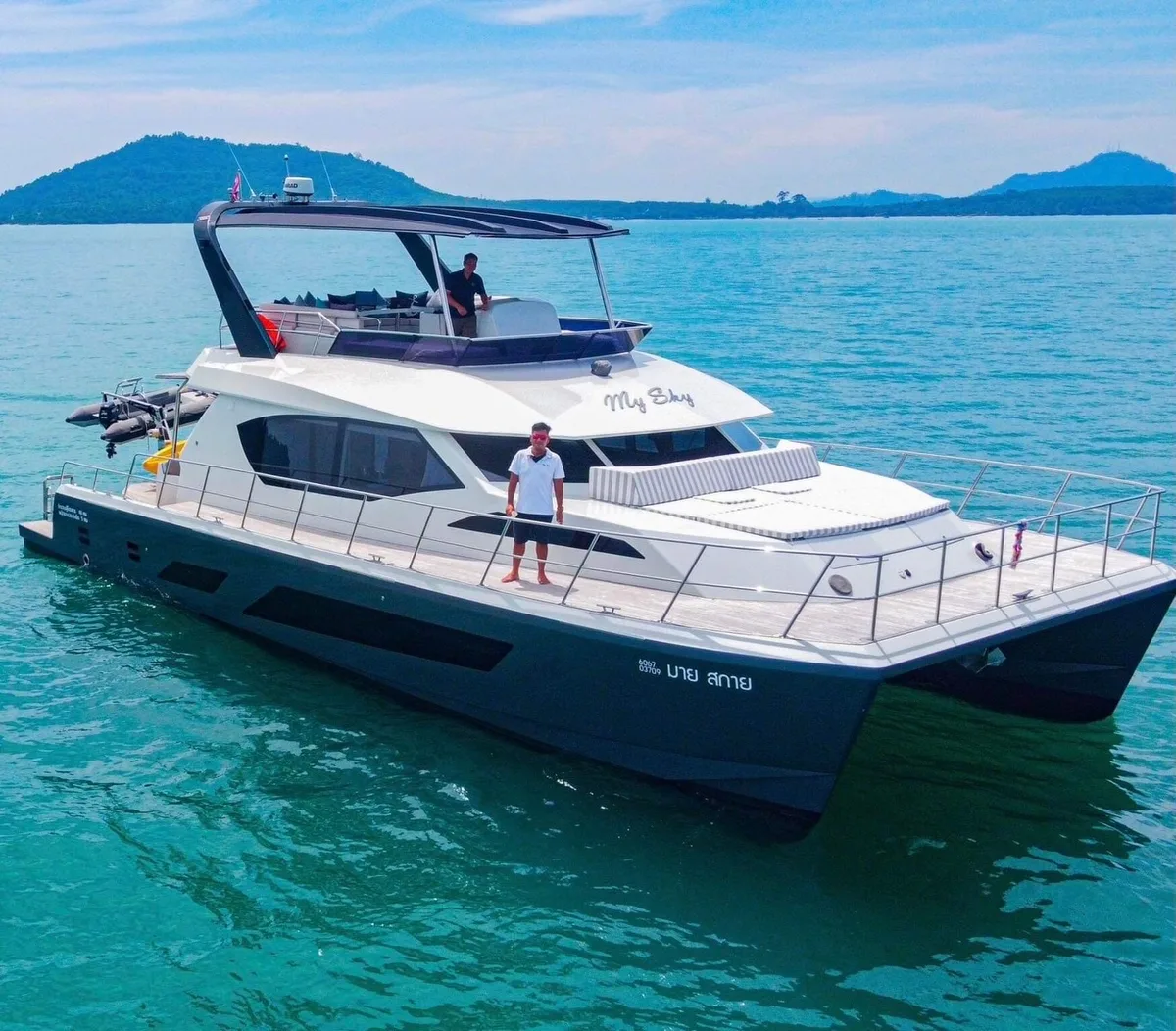 This Power Catamaran for Charter in Phuket is perfect for trips to Khai Islands, Koh Hong Island (Krabi), Phi Phi Islands, Phang Nga Bay (Khao Phing Kan), Koh Mai Thon/Maiton (Honeymoon Island), Koh Racha Yai (Koh Raya Yai), !
