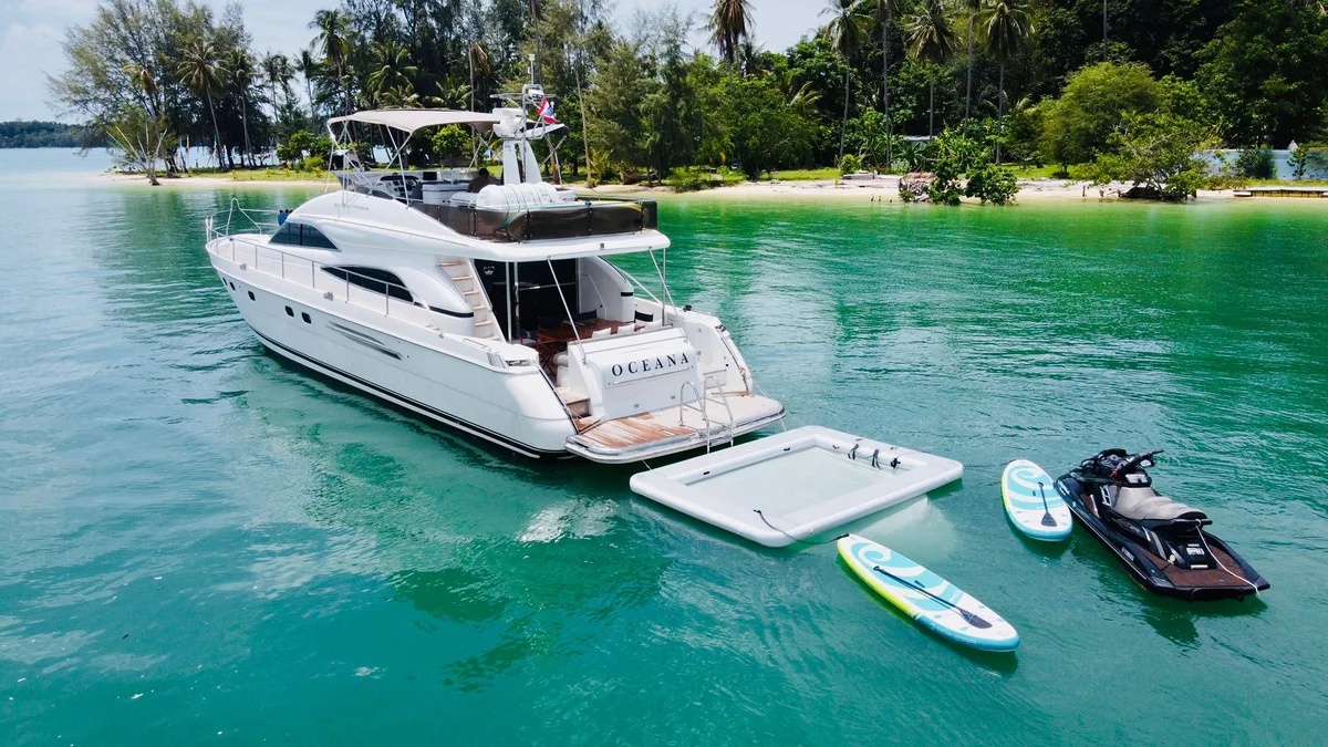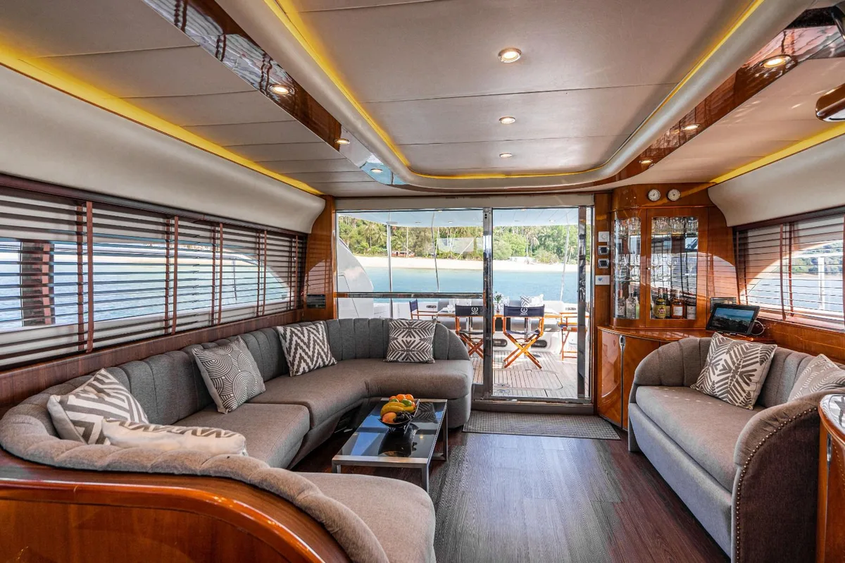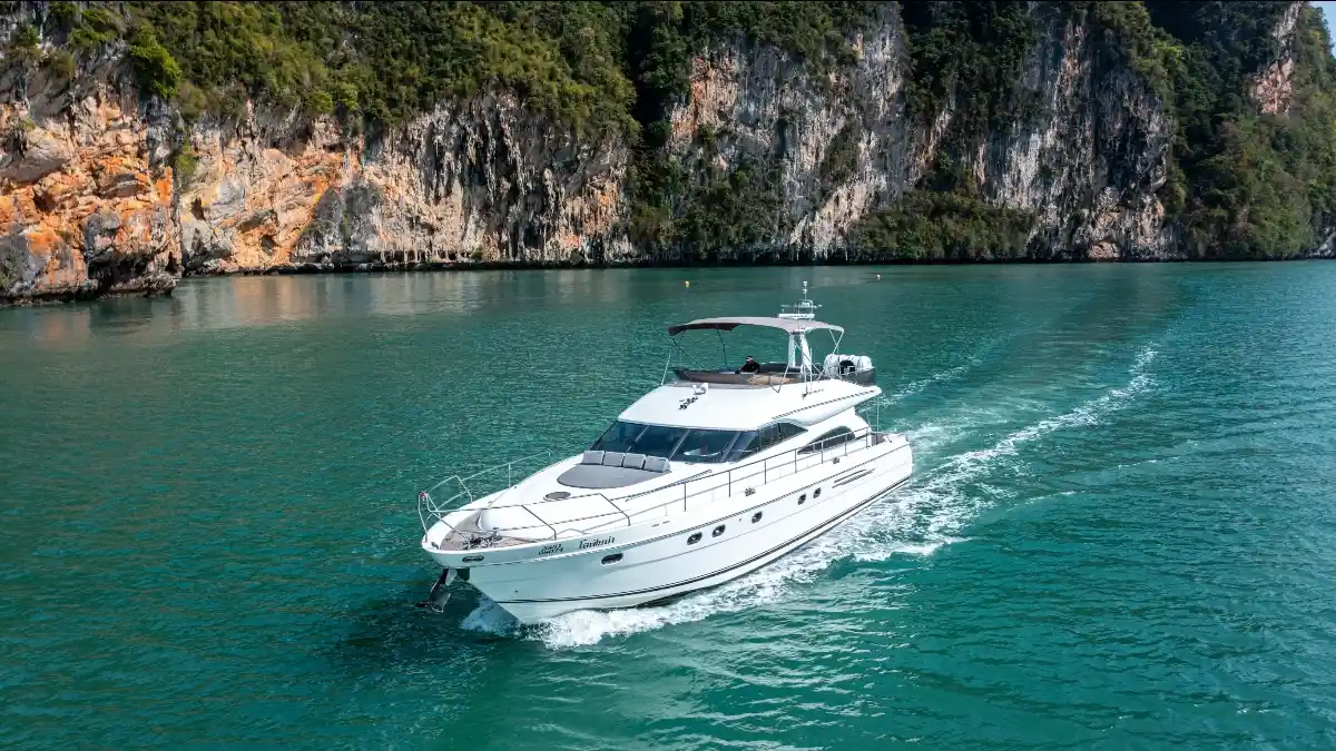 This Motor Yacht for Charter in Phuket is perfect for trips to Khai Islands, Phi Phi Islands, Phang Nga Bay (Khao Phing Kan), Koh Racha Yai (Koh Raya Yai), Krabi Islands, Koh Mai Thon/Maiton (Honeymoon Island), !