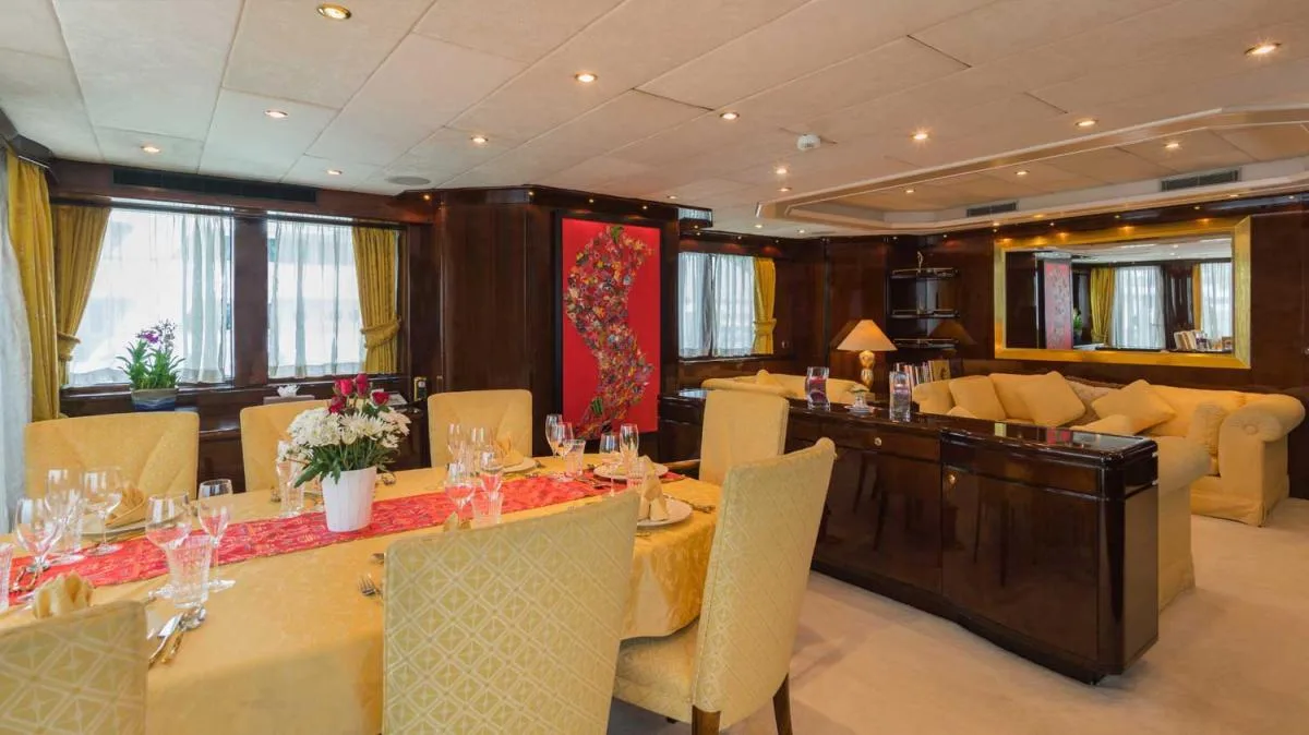 The 112 foot superyacht is the only one in our fleet to feature an electric piano. But that's just the tip of the iceberg of the royal lavish endowments that will remain unforgettable.