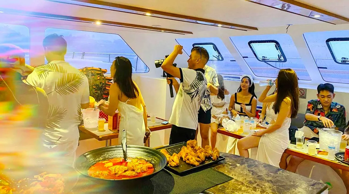 This is the right charter yacht for groups who like to sail with fun and plenty of space. Perfect power catamaran in Phuket for parties with family or friends. Water slider and inflatable pool included (on full-day tours).