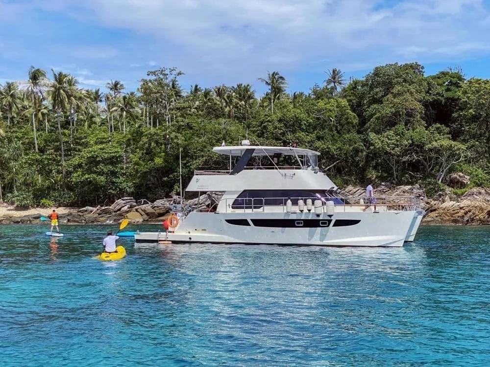 This Power Catamaran for Charter in Phuket is perfect for trips to Phi Phi Islands, Koh Mai Thon/Maiton (Honeymoon Island), Coral Island / Banana Beach (Koh Hey), Koh Racha Yai (Koh Raya Yai), !