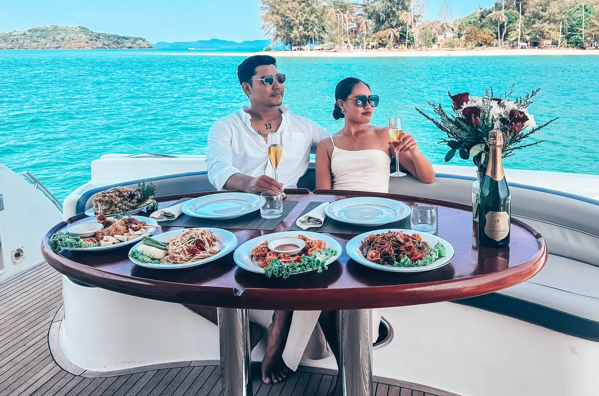 This Motor Yacht for Charter in Phuket is perfect for trips to Coral Island / Banana Beach (Koh Hey), Koh Mai Thon/Maiton (Honeymoon Island), Koh Hong Island (Krabi), Phang Nga Bay (Khao Phing Kan), Phi Phi Islands, !