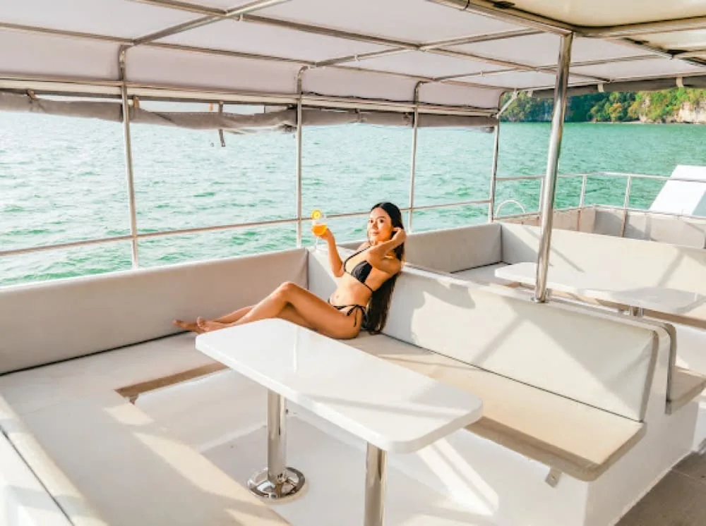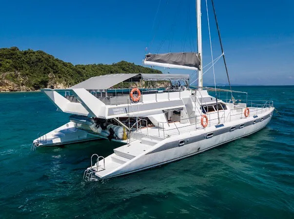 This unique spacious catamaran is ideal for large groups and family celebrations in style: There is space for up to 80 people on the lower and upper decks as well as the front seats - and they can enjoy the wonderful world of Phang Nga with pleasure. Or explore Naka and Khai Island for great water splashing fun.
