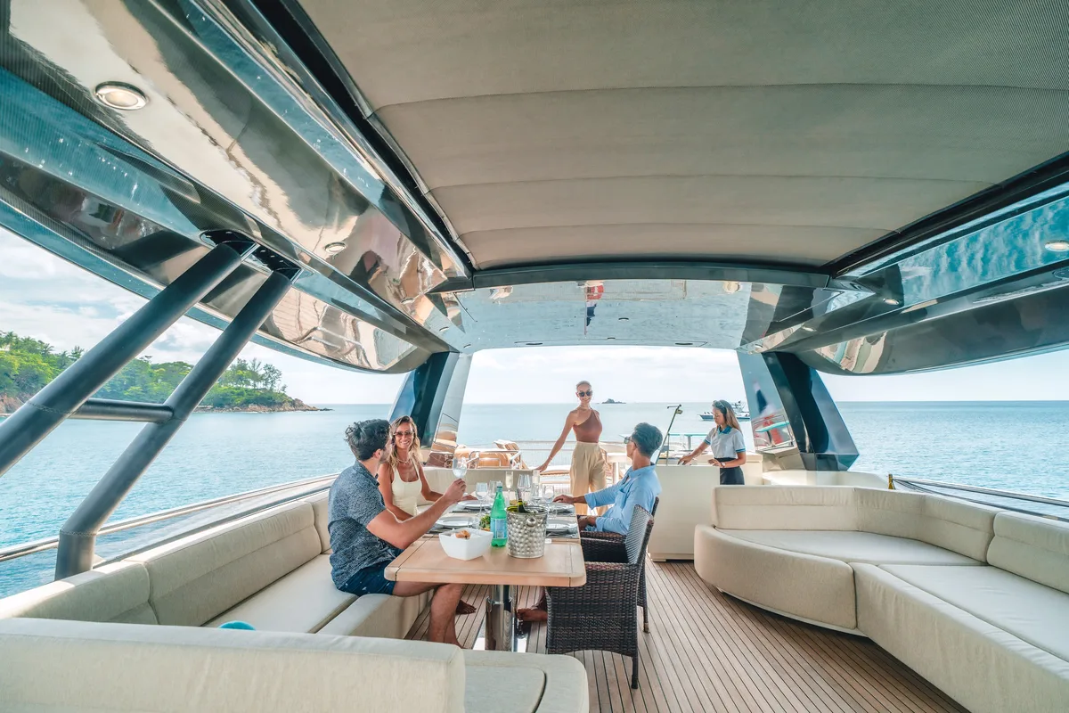 This เรือยอทชนิดซุปเปอร์ for เช่าเรือยอร์ช in Phuket is perfect for ทริปไป !